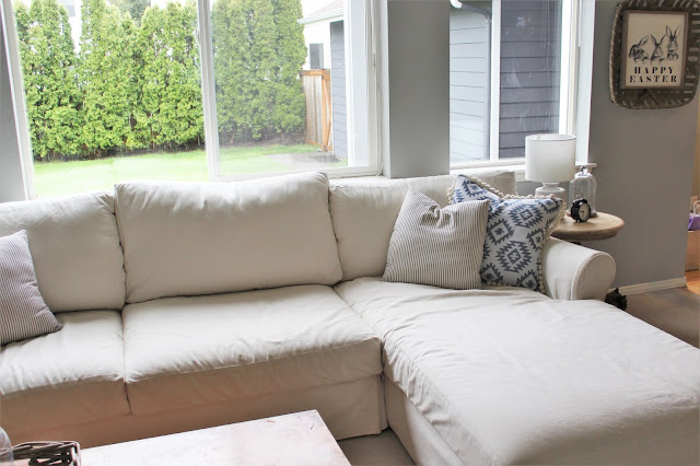 I made a few new pillow covers to go with our newly covered couch. I LOVE that print on the blue ones. I thought I would copycat the tassle/fringe trend and I love how they turned out with the pom poms on them. Makes me want to have all my pillows like that.